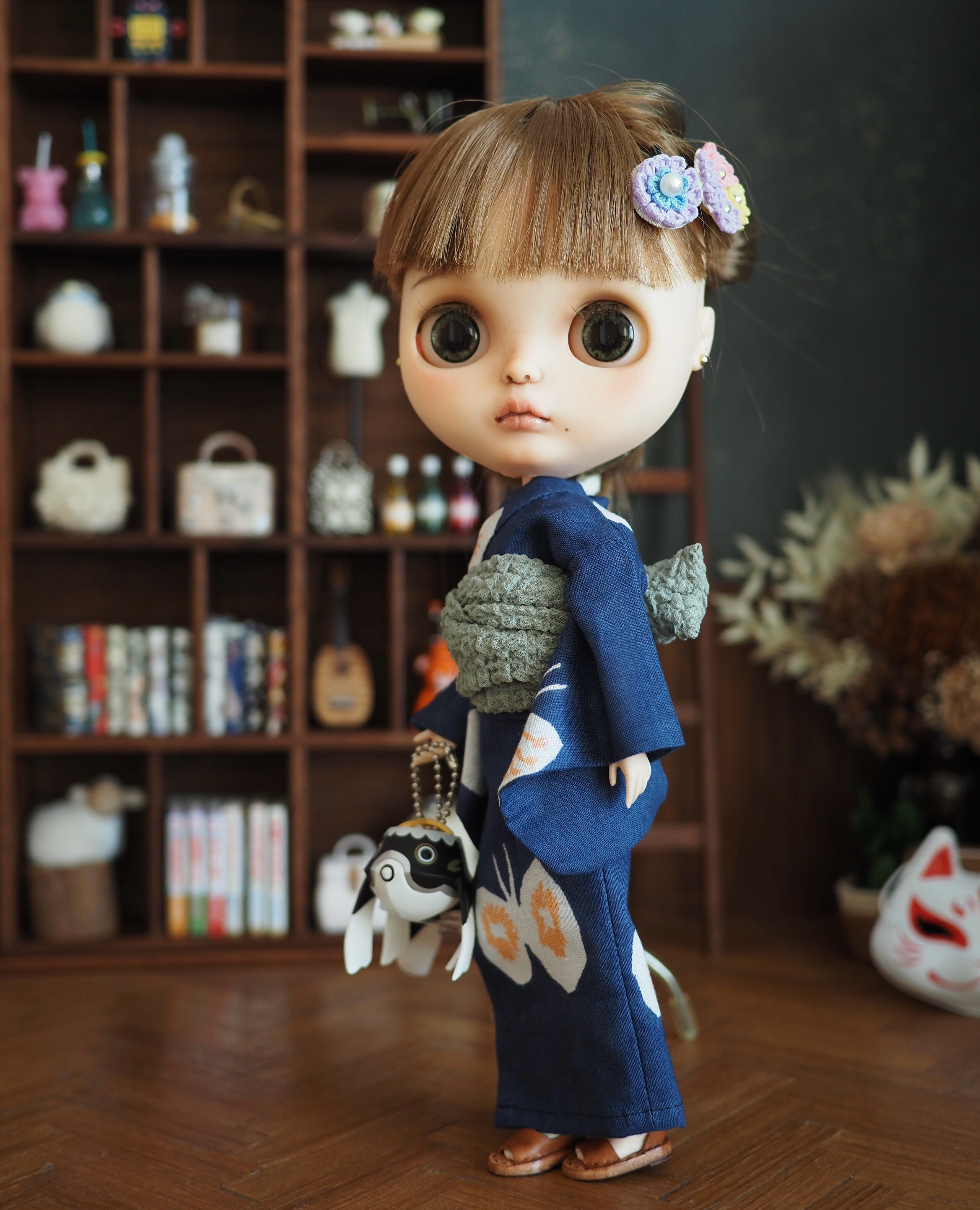 ⚠オビツ22ボディに合うように着丈をおはしょり内側部分で少し折り上げてアイロンで抑えて納品いたします。ピュアニーモSフレクションなどには裾をひっぱって折り上げた部分を伸ばしてからの着用がおすすめです。